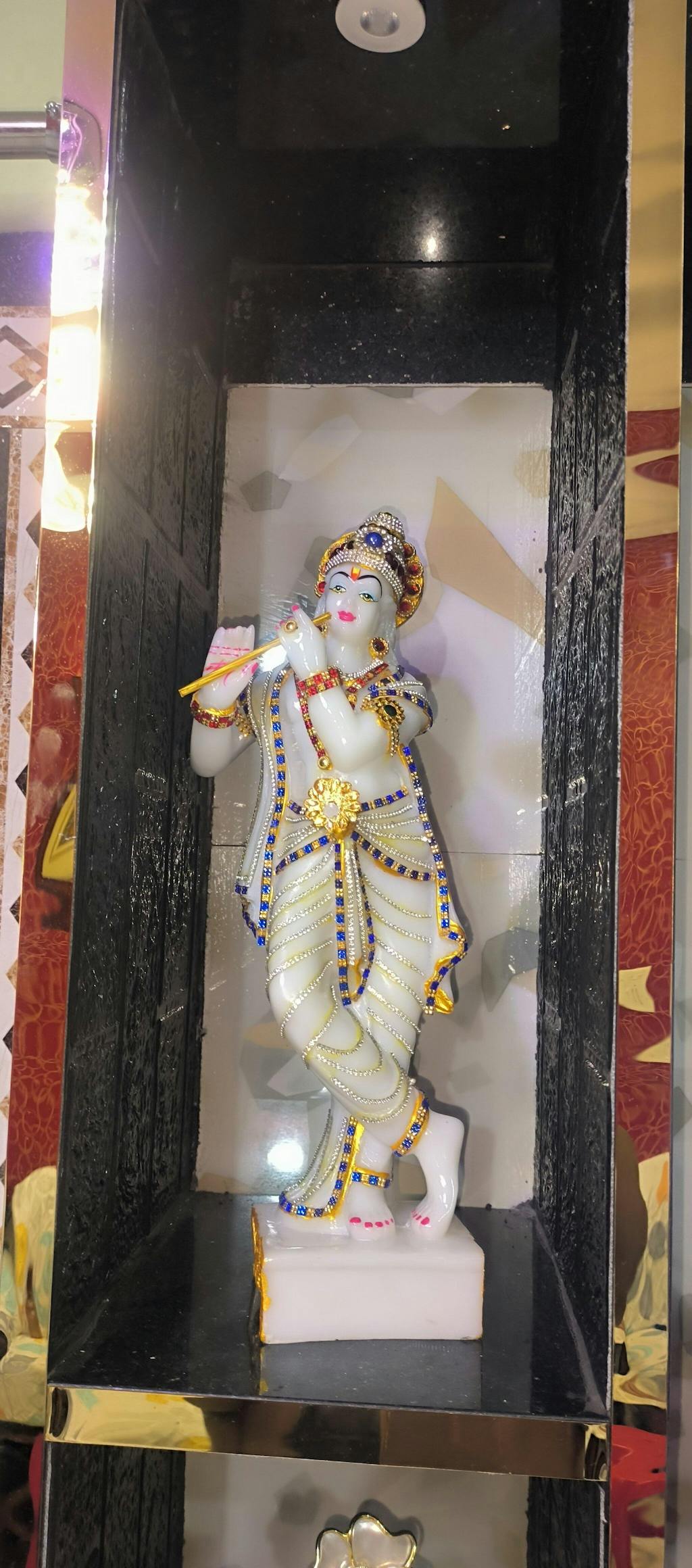 If you are looking for a Krishna murti for pooja, decorative Krishna idol, or a spiritual home décor statue, this 16-inch standing Krishna idol is the ideal choice.