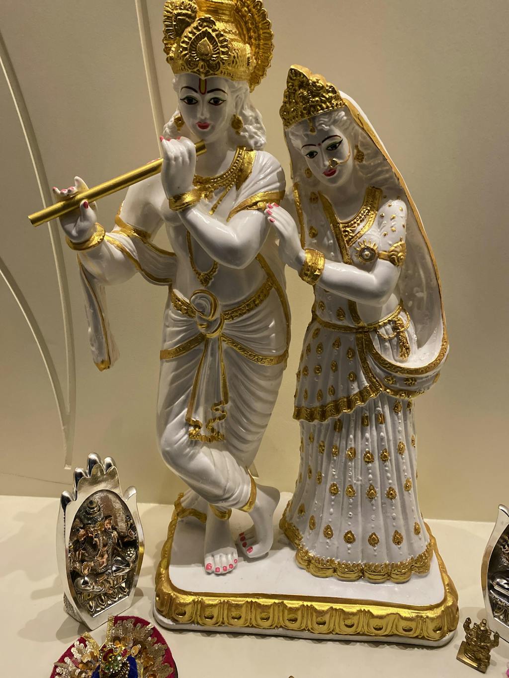 Design style: Lord Radha Krishna Statue is exquisitely hand-crafted in India by master artists Lord Radha Krishna Idol is embellished with jerkin work which does not blacken over time. Finished with Imported Lacquer to give high abrasion resistance which gives a protective coating to the paint.